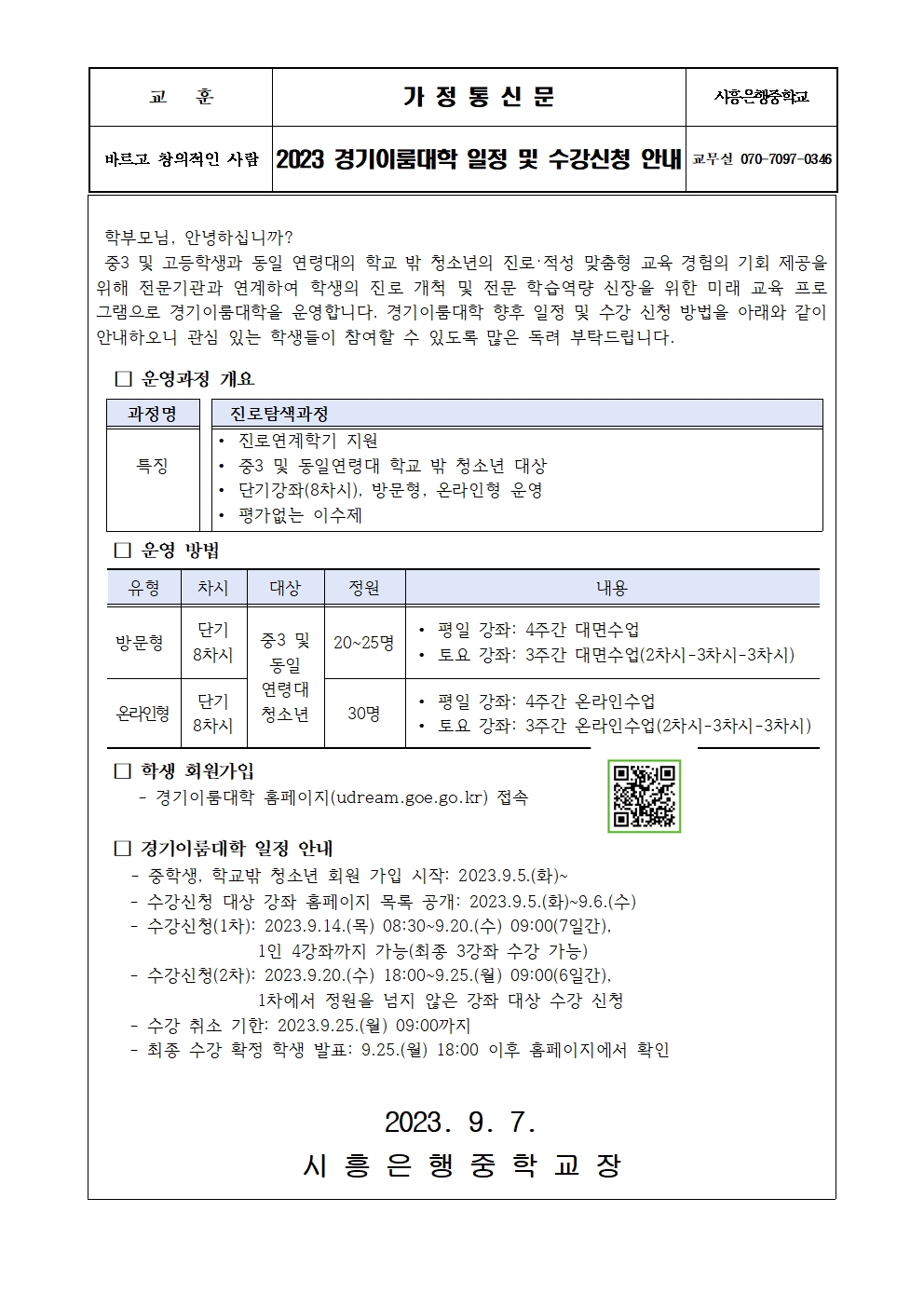 2023 °æ±âÀÌ·ë´ëÇÐ ÀÏÁ¤ ¹× ¼ö°­½Åû ¾È³» °¡Á¤Åë½Å¹®001.jpg (537.97KB)