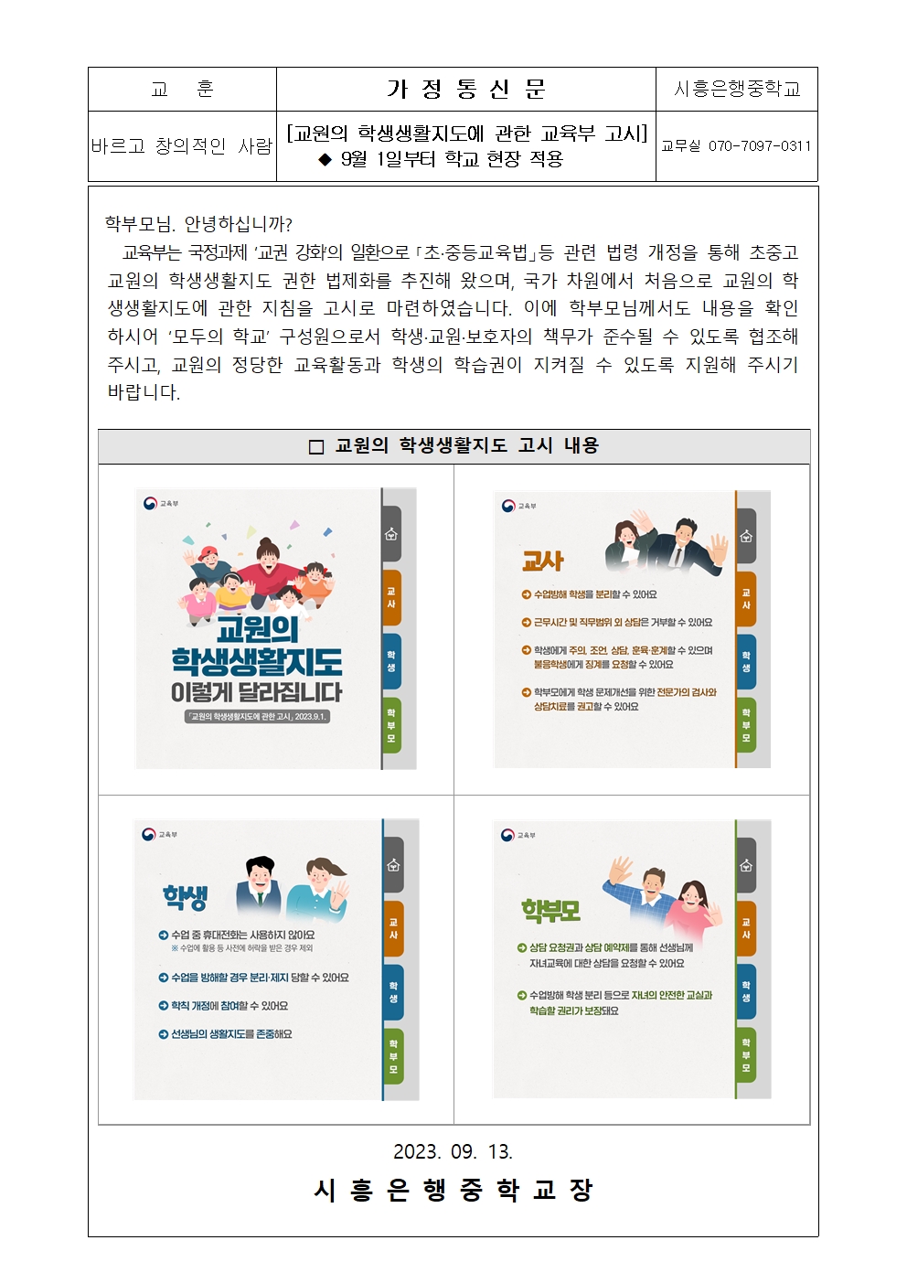 [±³¿øÀÇ Çлý»ýȰÁöµµ¿¡ °üÇÑ ±³À°ºÎ °í½Ã]󰋮 9¿ù 1ÀϺÎÅÍ Çб³ ÇöÀå Àû¿ë.jpg (535.70KB)