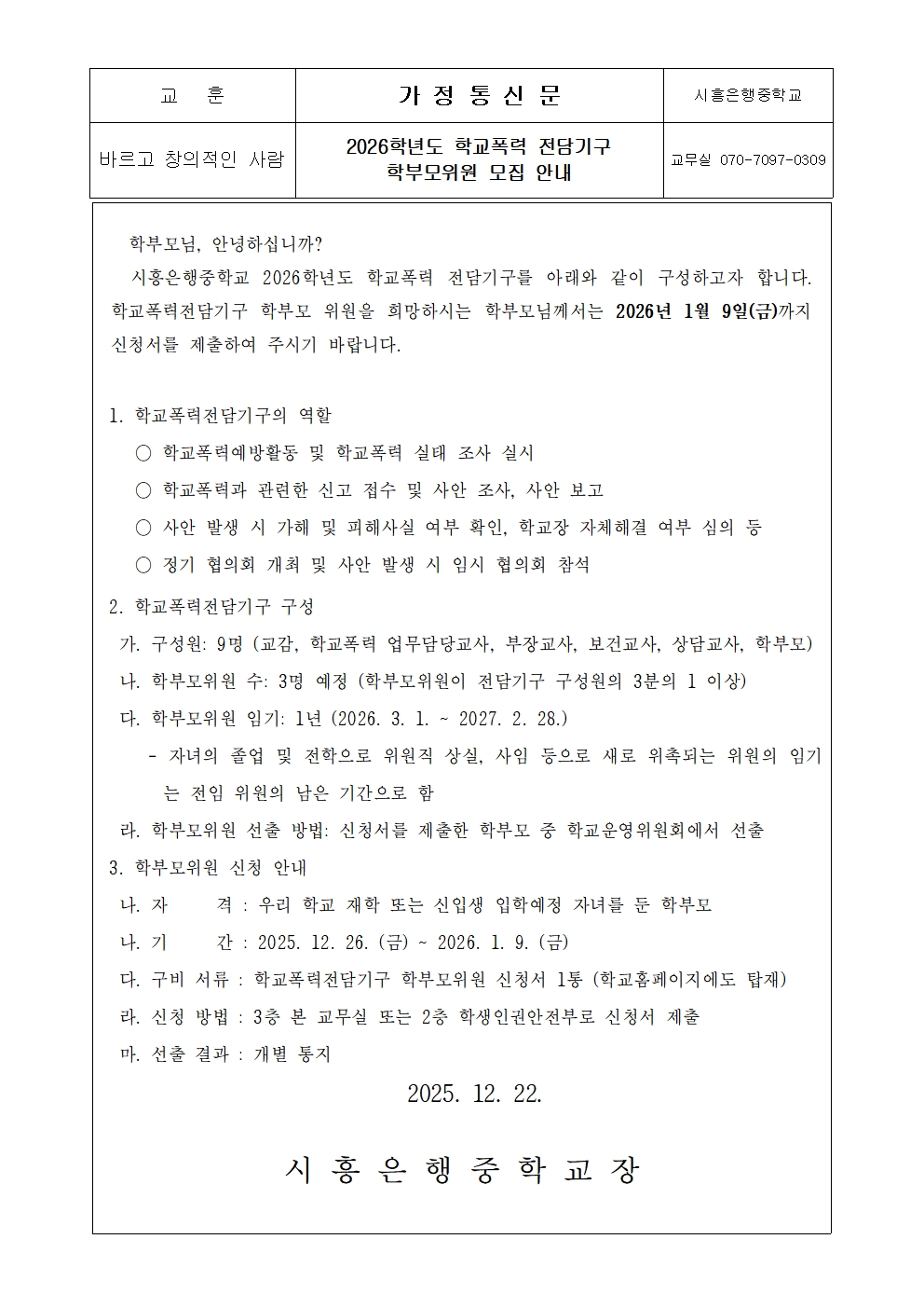[ÀϹÝ] 2026Çг⵵ Çб³Æø·Â Àü´ã±â±¸ ÇкθðÀ§¿ø ¸ðÁý ¾È³» °¡Á¤Åë½Å¹®ÀÇ Ã·ºÎÀ̹ÌÁö 2