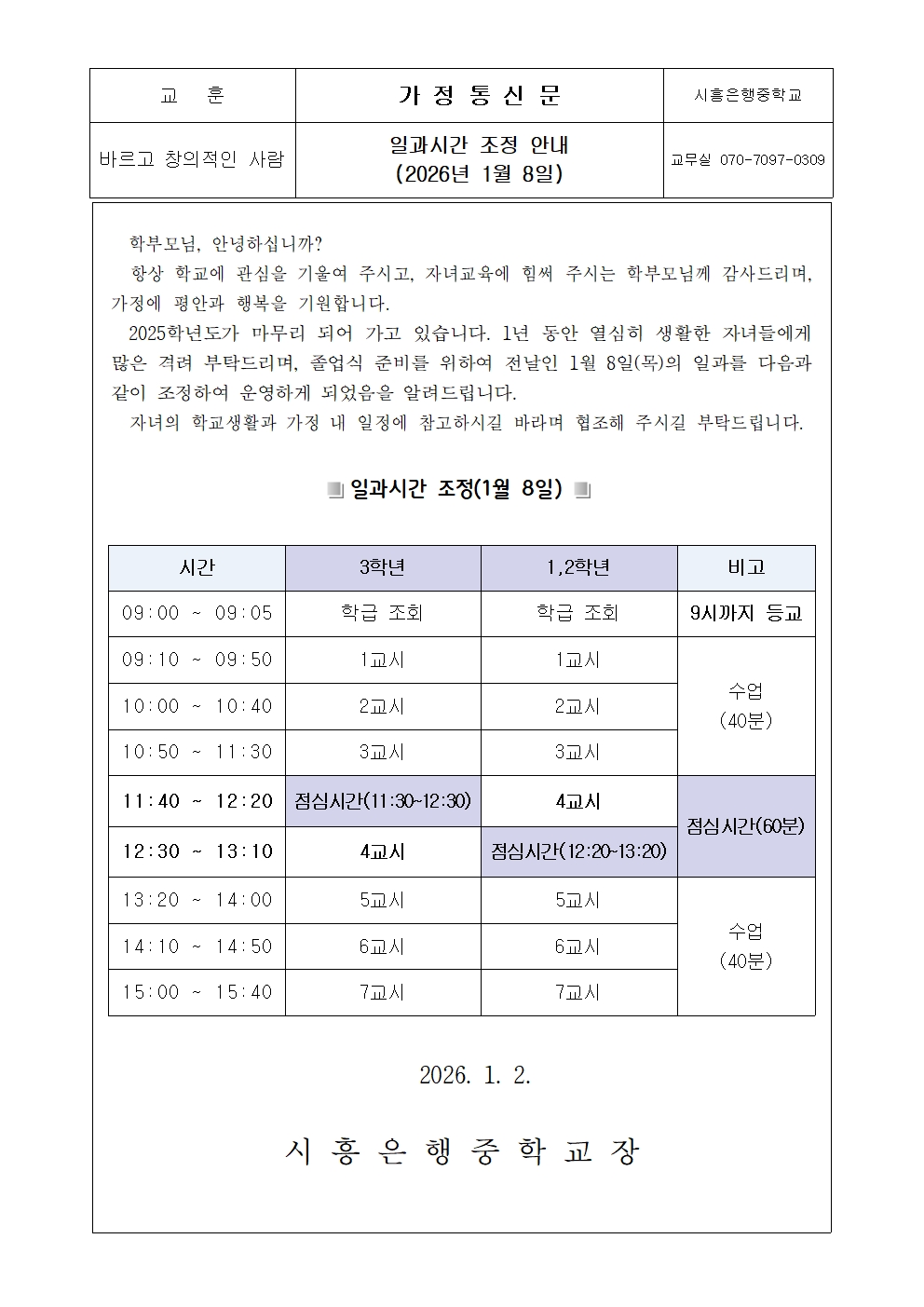 [ÀϹÝ] Àϰú½Ã°£ Á¶Á¤ ¾È³» (2026³â 1¿ù 8ÀÏ)ÀÇ Ã·ºÎÀ̹ÌÁö 1