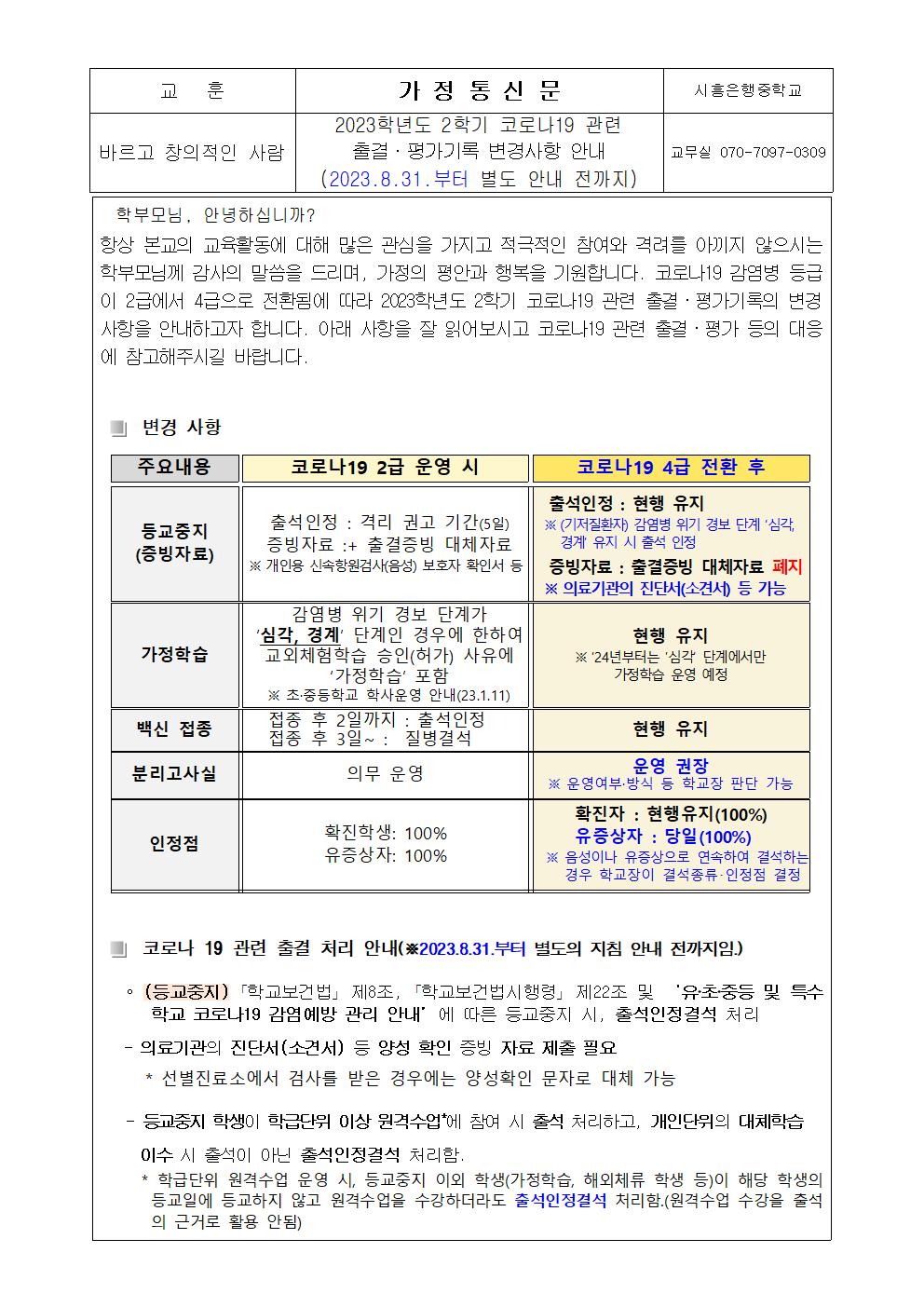 [ÀϹÝ] 2023Çг⵵ 2Çбâ Äڷγª19 °ü·Ã Ãâ°á Æò°¡ ±â·Ï º¯°æ»çÇ× ¾È³» °¡Á¤Åë½Å¹®[2023.8.31.ºÎÅÍ º°µµ ¾È³» Àü±îÁö]ÀÇ Ã·ºÎÀ̹ÌÁö 2