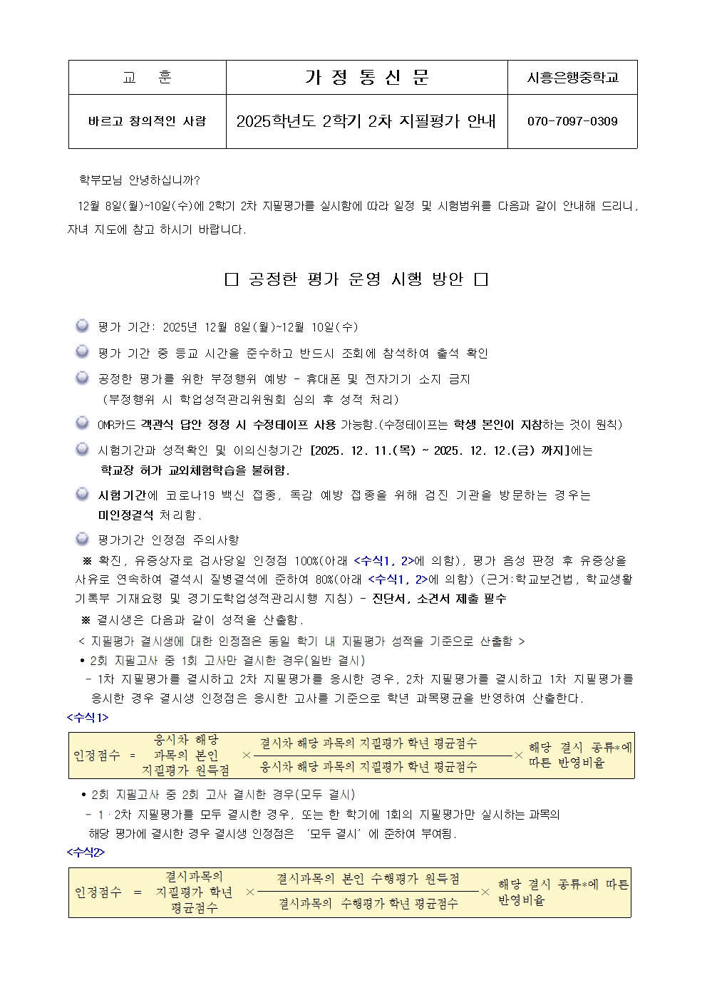 2025Çг⵵ 1,2Çгâ 2Çбâ 2Â÷ ÁöÇÊÆò°¡ ¾È³» °¡Á¤Åë½Å¹® ÀÔ´Ï´Ù.
