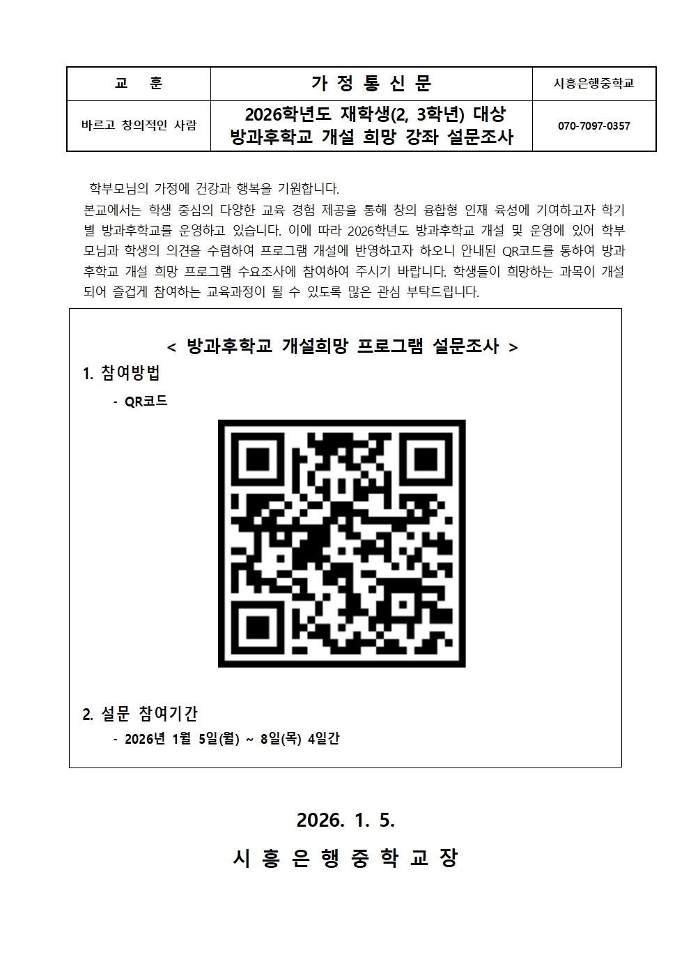 [ÀϹÝ] 2026 2,3Çг⠴ë»ó ¹æ°úÈÄÇб³ °³¼³ Èñ¸Á °­Á ¼³¹®Á¶»ç °¡Á¤Åë½Å¹®ÀÇ Ã·ºÎÀ̹ÌÁö 1