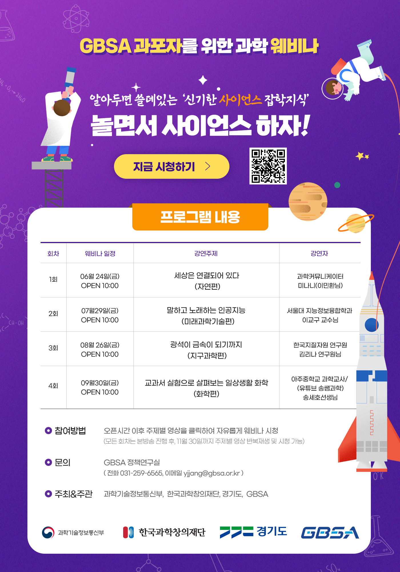 °úÇбâ¼úÁ¤º¸Åë½ÅºÎ¿Í °æ±âµµÀÇ ¡¸Áö¿ª°úÇй®È ¿ª·®°È »ç¾÷¡¹ÃßÁø¿¡ µû¶ó, ¿Â¶óÀÎ °úÇÐ °¿¬(¿þºñ³ª)À» Á¦ÀÛÇÏ¿©