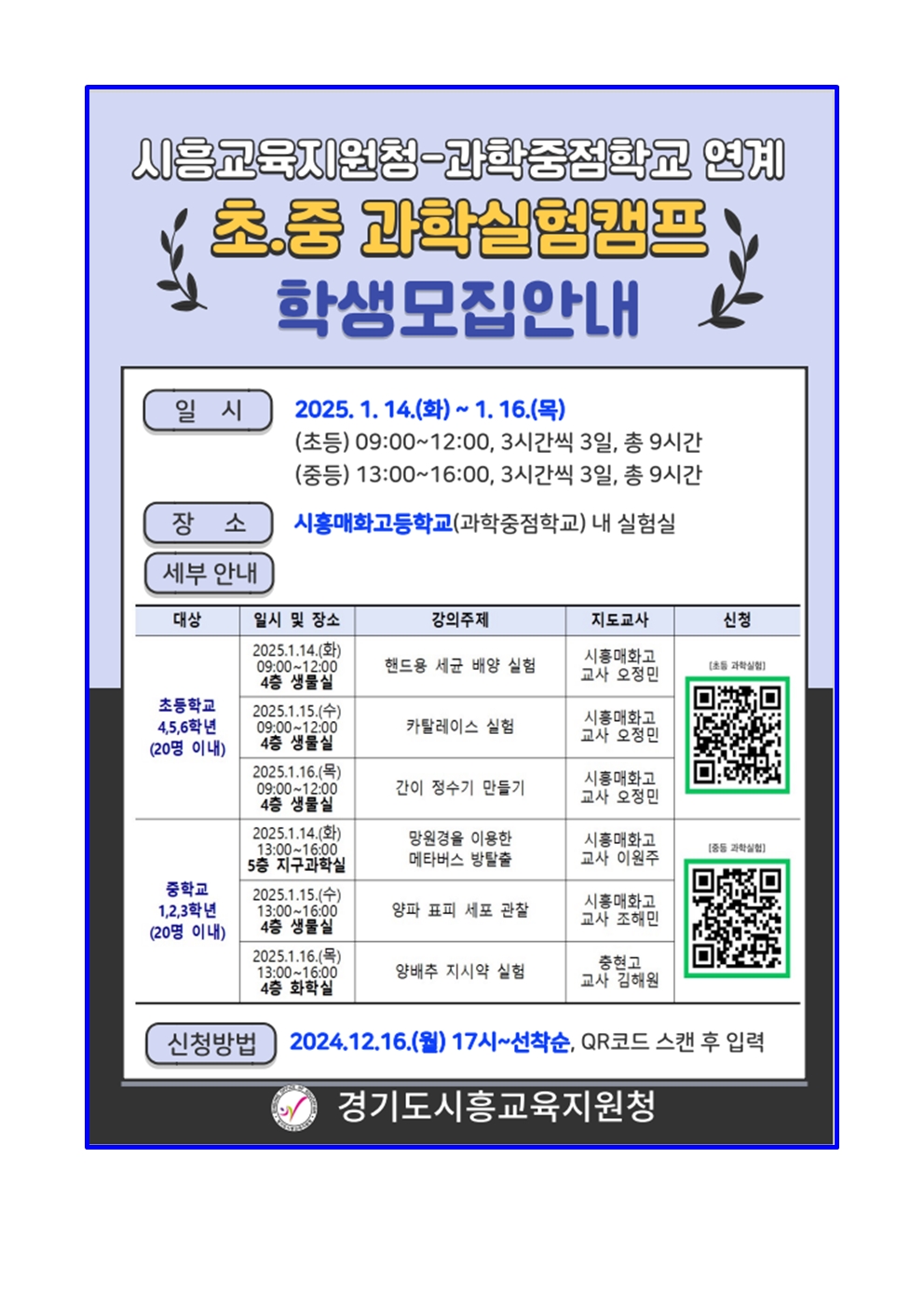 [ÀϹÝ] ½ÃÈï±³À°Áö¿øÃ»-°úÇÐÁßÁ¡Çб³ ¿¬°è °úÇнÇÇèÄ·ÇÁ ¾È³»