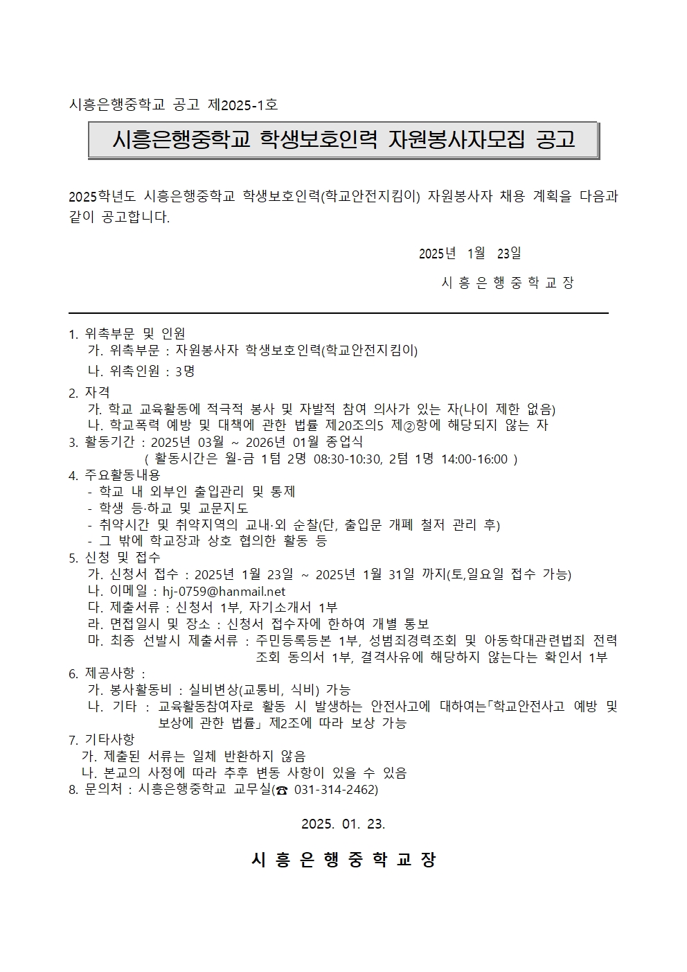 2025Çг⵵ ½ÃÈïÀºÇàÁßÇб³ ÀÚÀ¯ÇбâȰµ¿ ÇÁ·Î±×·¥ ¿ÜºÎ°­»ç ¸ðÁý °ø°í¹®
