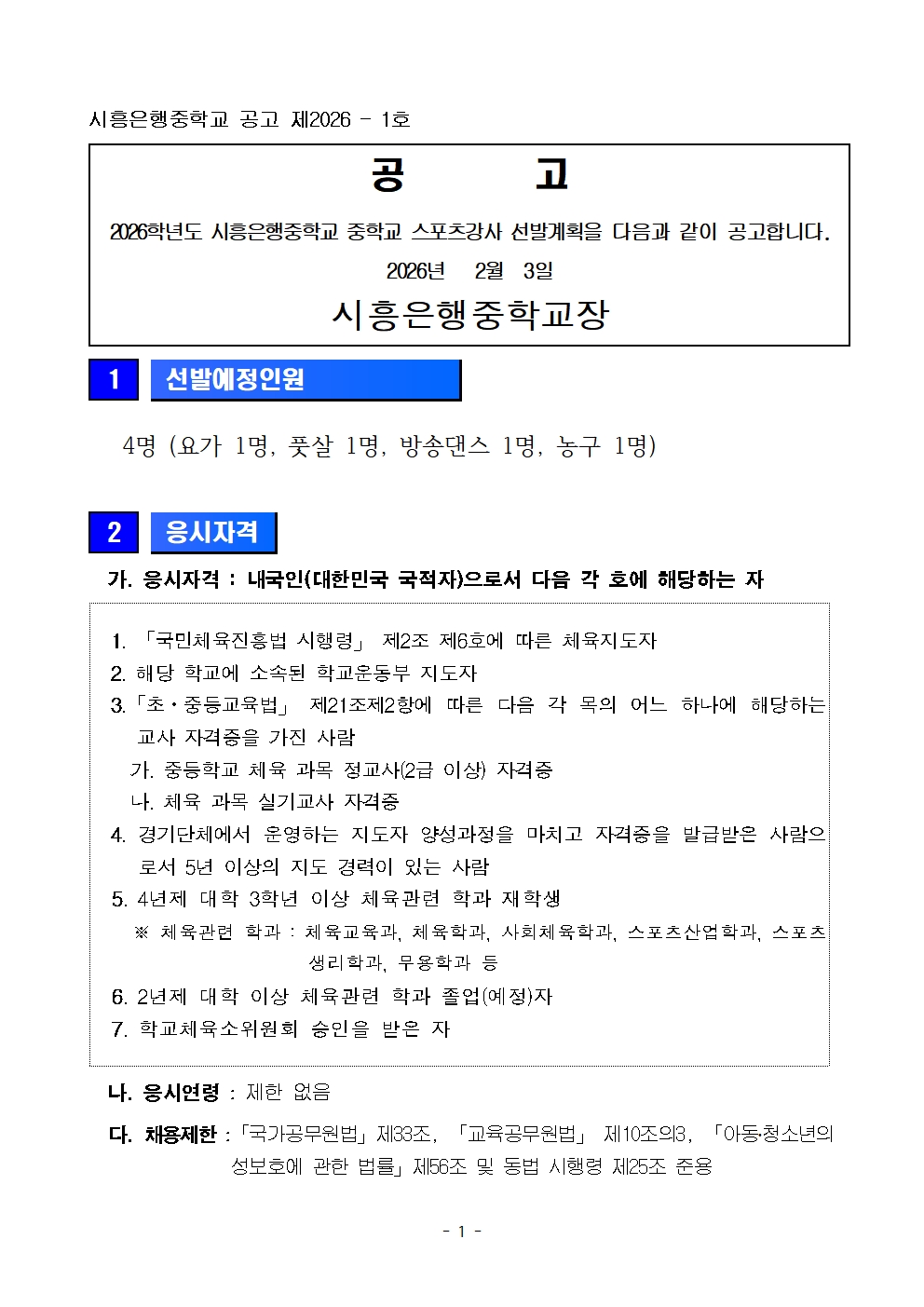 [ÀϹÝ] 2026³â ½ÃÈïÀºÇàÁßÇб³ ½ºÆ÷Ã÷°­»ç ¸ðÁý°ø°íÀÇ Ã·ºÎÀ̹ÌÁö 4