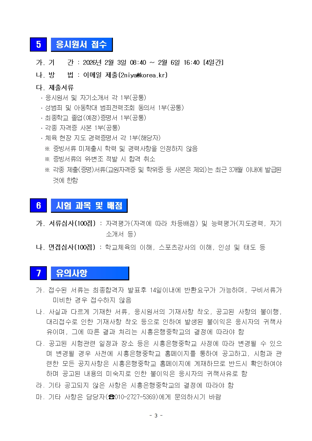 [ÀϹÝ] 2026³â ½ÃÈïÀºÇàÁßÇб³ ½ºÆ÷Ã÷°­»ç ¸ðÁý°ø°íÀÇ Ã·ºÎÀ̹ÌÁö 3