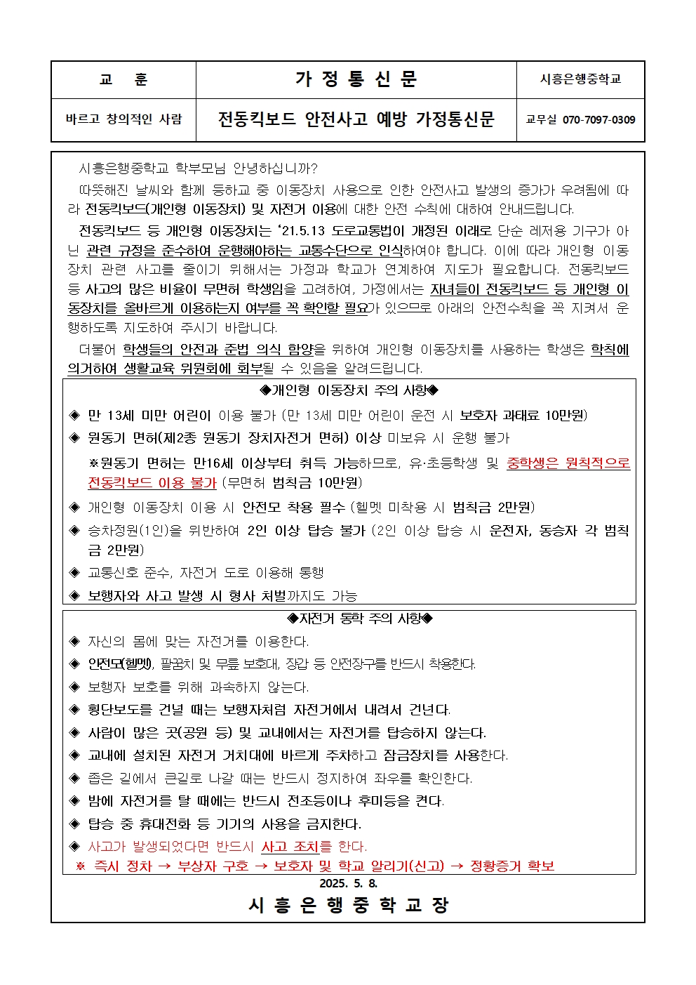 [ÀϹÝ] °³ÀÎÇü À̵¿ÀåÄ¡ ¹× ÀÚÀü°Å ¾ÈÀü»ç°í ¿¹¹æ ¾È³» °¡Á¤Åë½Å¹®(5¿ù)ÀÇ Ã·ºÎÀ̹ÌÁö 1
